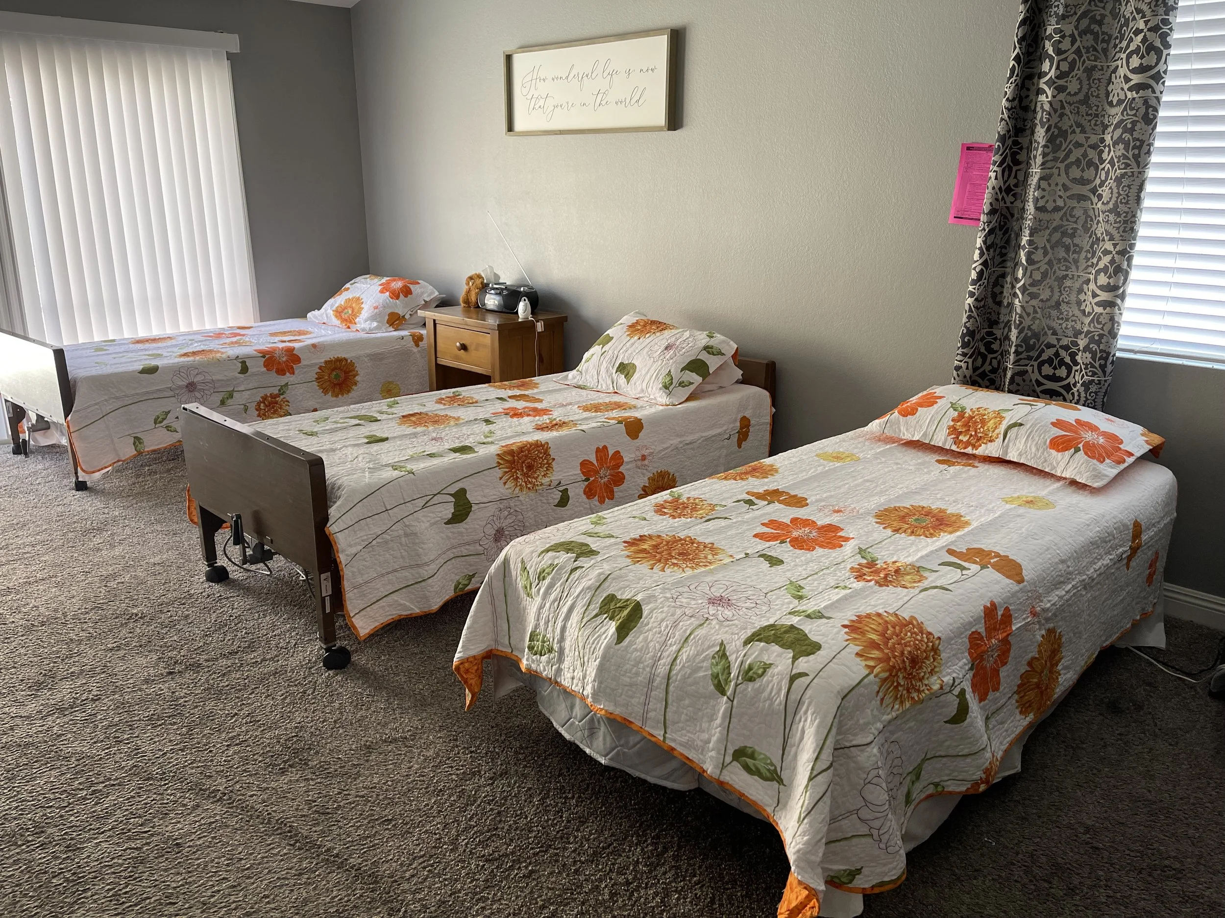 Our Shared Rooms come with a home hospital bed, nightstand, dresser, and shared closet.
